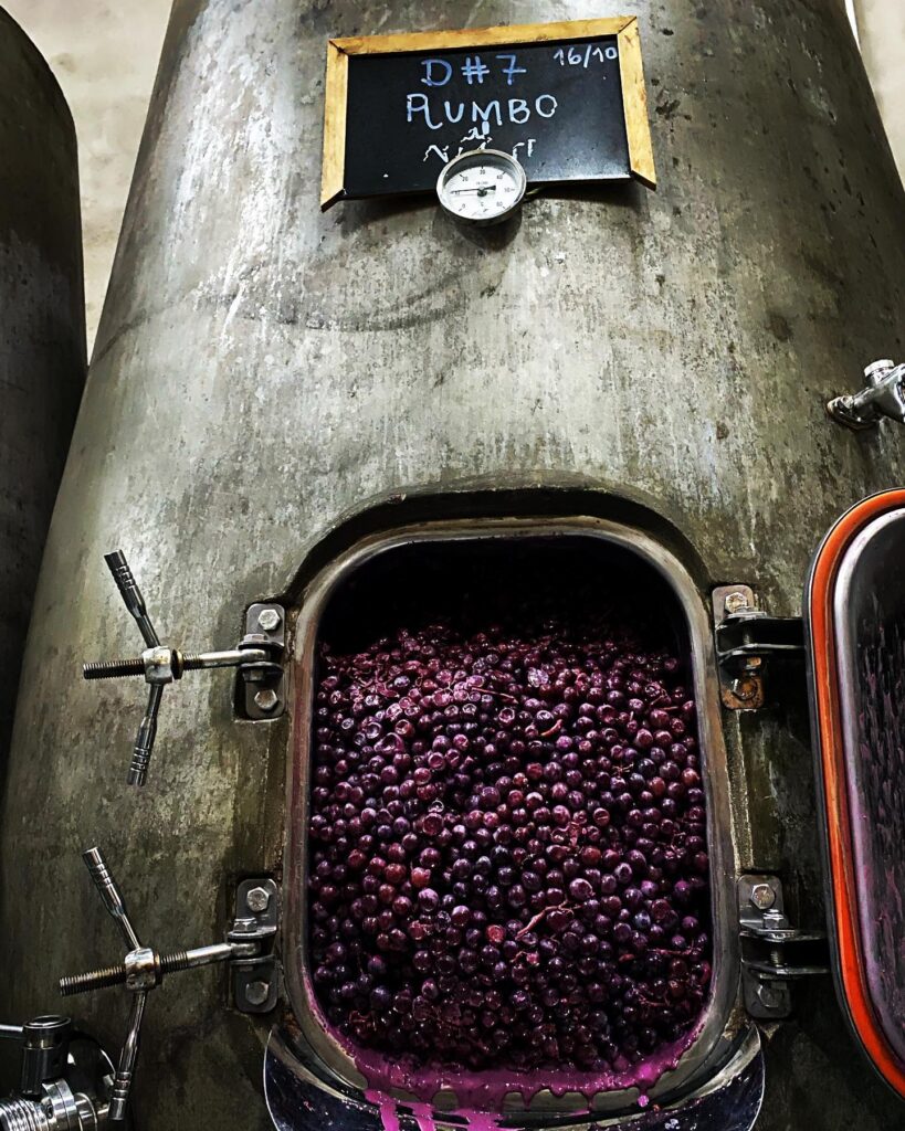 Práce ve sklepě je tradiční a maximálně šetrná, s minimálními zásahy. Používají 100% celé hrozny, pomalou maceraci a fermentaci v otevřených dubových kádích. Víno následně zraje v různě velkých použitých dubových sudech, demi-muidech a foudre.